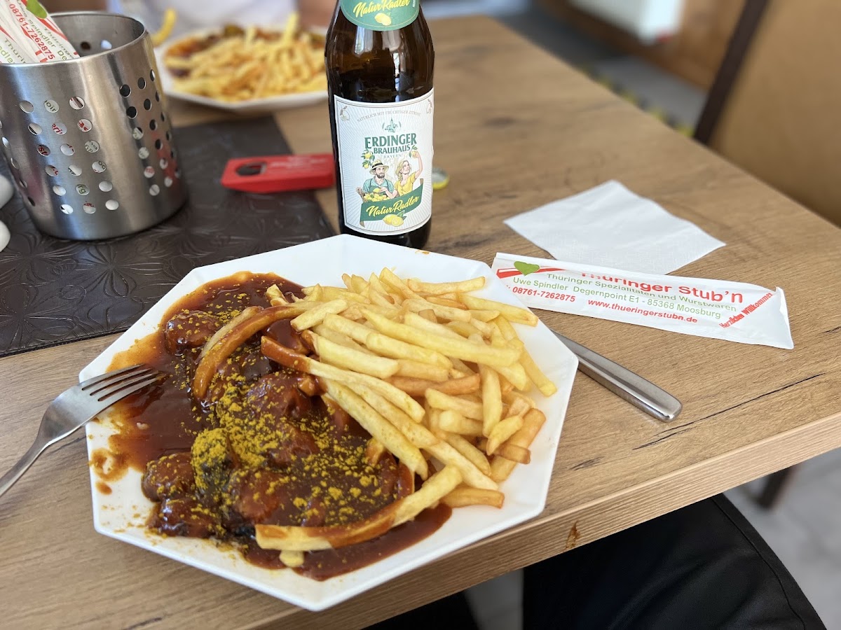 One of the standout features of Restaurant Thüringer Stub'n is its traditional menu, which highlights some of the finest dishes Germany has to offer. The Thüringer Bratwurst is a must-try, offering a savory, smoky flavor that’s hard to beat. Paired with a side of crispy fries, it’s the ultimate comfort food. Another crowd-pleaser is the Currywurst mit Pommes, a favorite among locals. This dish features a juicy sausage drenched in a tangy curry sauce, served alongside a generous helping of crispy fries. If you’re in the mood for something filling, the Bauernfrühstück, a classic German farmhouse breakfast dish, is an excellent choice. With its combination of eggs, potatoes, bacon, and onions, it’s the perfect meal to start your day or enjoy at any time.